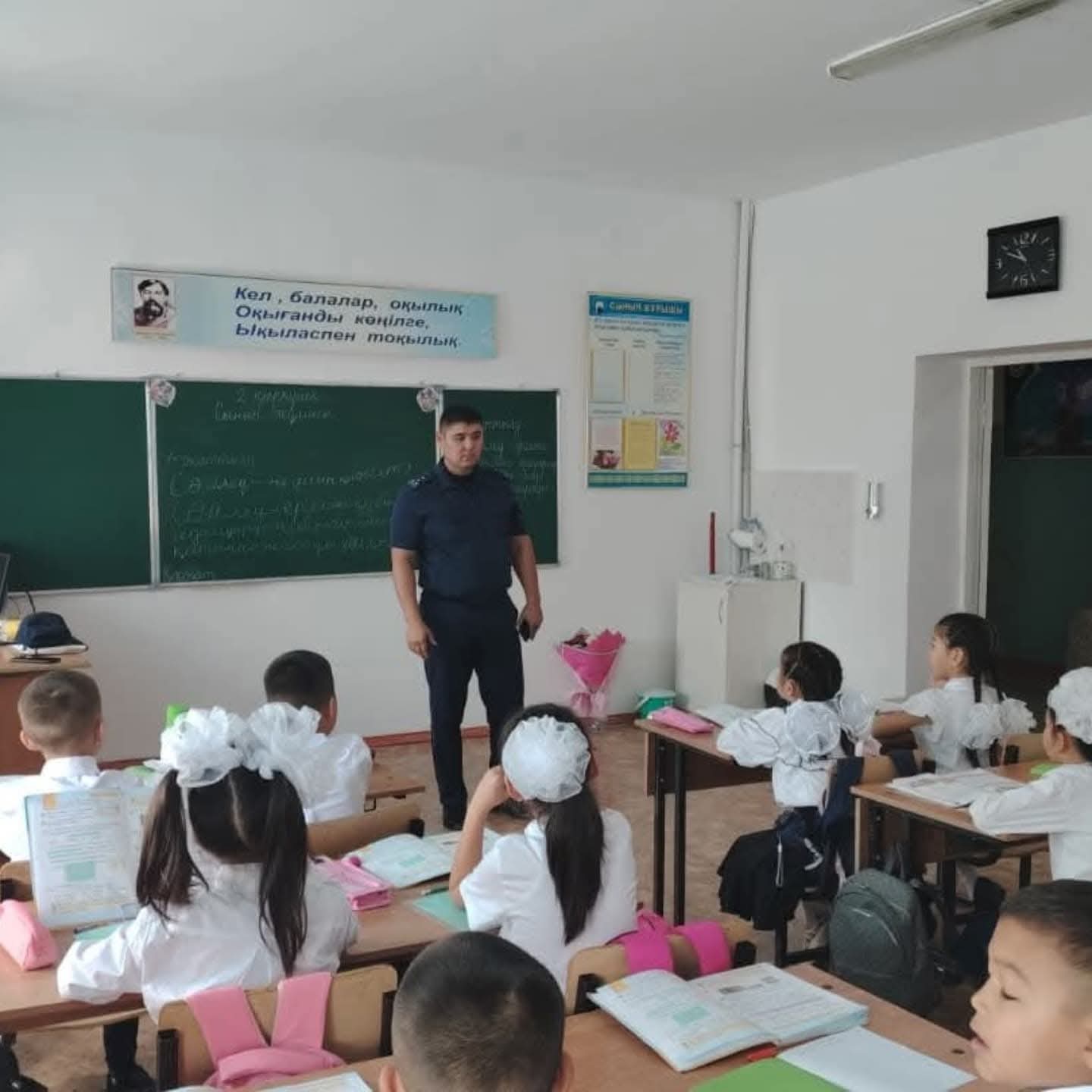 Шымкент қаласы білім басқармасына қарасты №68 жалпы орта білім беретін мектебі коммуналдық мемлекеттік мекемесінде 2025 жылдың 15 қыркүйек күні 1-7 сынып білім алушыларына жол қауіпсіздігі ережелерін сақтау мақсатында мектептің аймақтық полиция инспекторы Шымкент ҚПД Еңбекші ауданы АПБ ЖПҚ ЮПБ УПИ полиция капитаны Е.Н.Утегенов мектеп әкімшілігімен бірлесіп "Балалардың көшеде жүру ережелері!" тақырыбында түсіндірме жұмыстарын жүргізді.