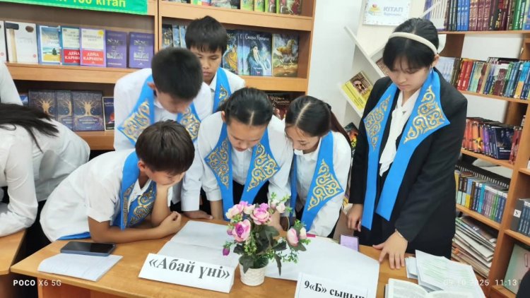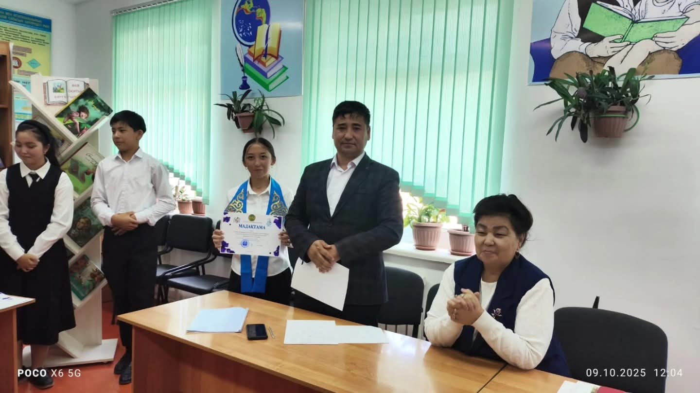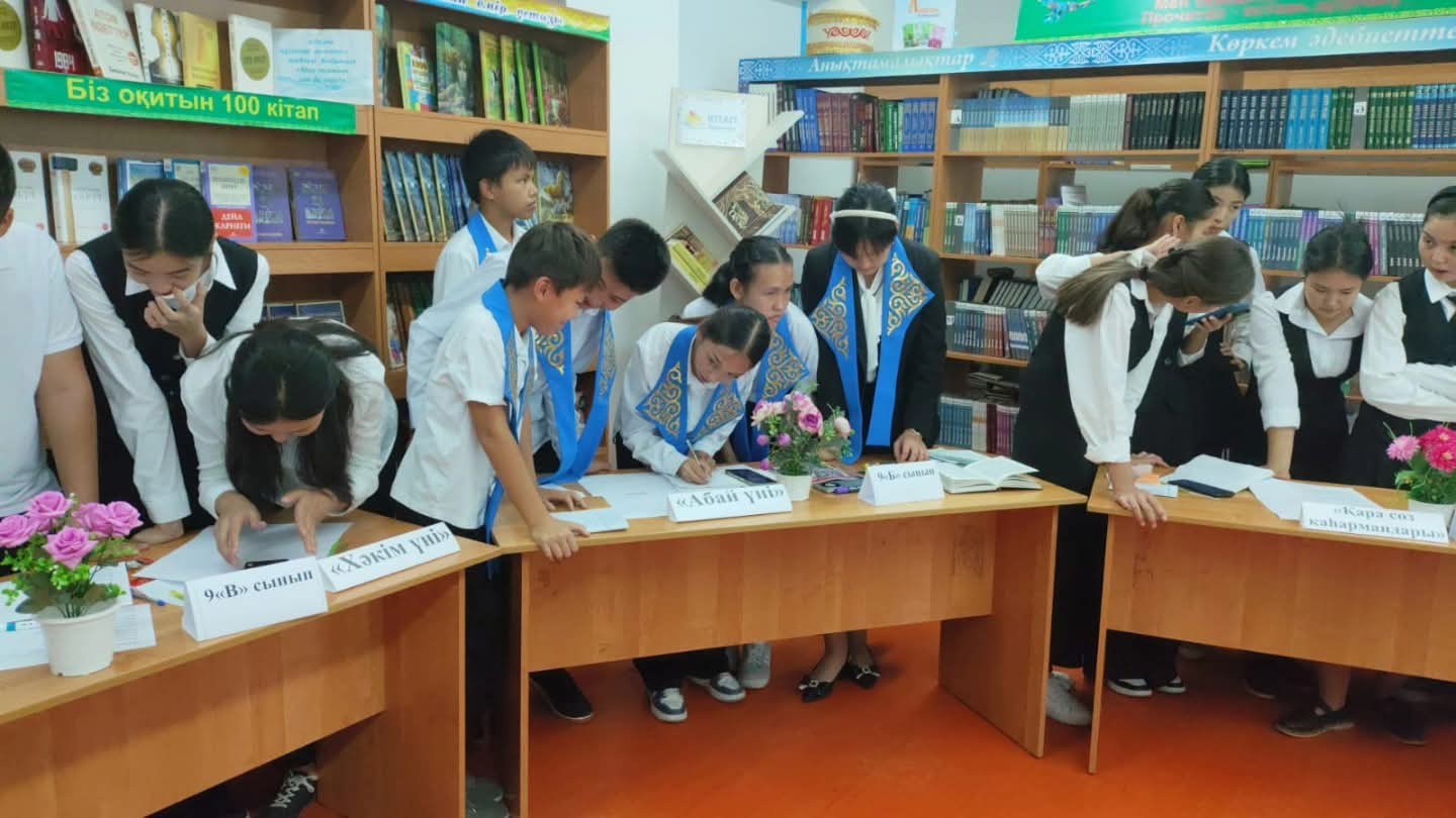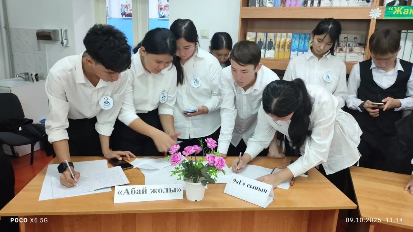 Қазақ халқының ұлы перзенті, ақын дарын иесі Абай Құнанбаевтың 180 жылдық мерейтойына арнап, мектебіміздің қазақ тілі мен әдебиеті пәні мұғалімі Н.Абдуллаеваның ұйымдастыруымен 9 сыныптар арасында "Озық ойлы Абайтанушы" атты білгірлер сайысын өткізді. Сайыс тартысты, әрі қызықты өтті. Топтан оза шауып келген оқушылар мектеп директорының 1-орын 9 "А" сынып "Қара сөз қаһармандары" тобы, 2-орын 9 "Б" сынып "Абай үні" тобы, 3-орын 9 "Д" "Талап,еңбек, терең ой " тобы жүлделі алғыс хатымен марапатталды.