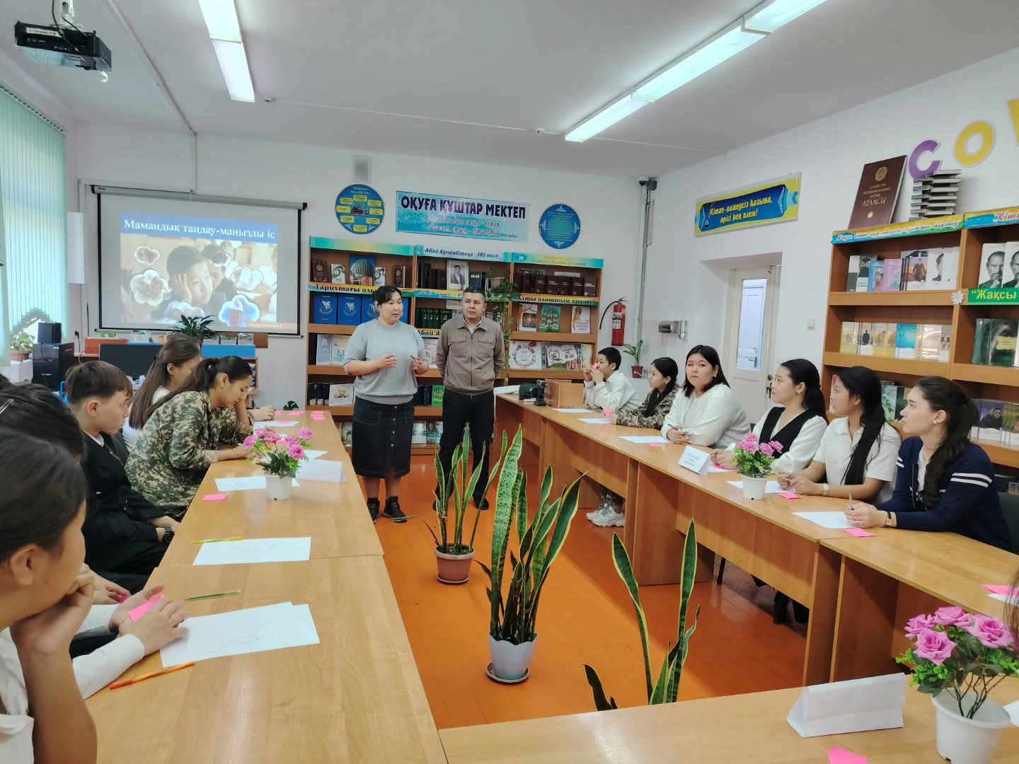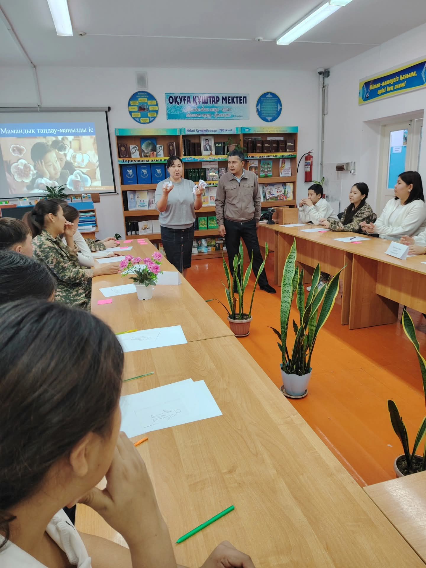 Мектеп қабырғасында берілетін кәсіби бағдар — оқушыға өз қабілетін тануға, болашағын айқындауға, дұрыс шешім қабылдауға жол ашады. Мектебіміздің кәсіби бағыт бағдар беруші Хайрова Майнұр мен Кидирбаев Жасұлан оқушыларғамен тренинг сабағын өткізді.