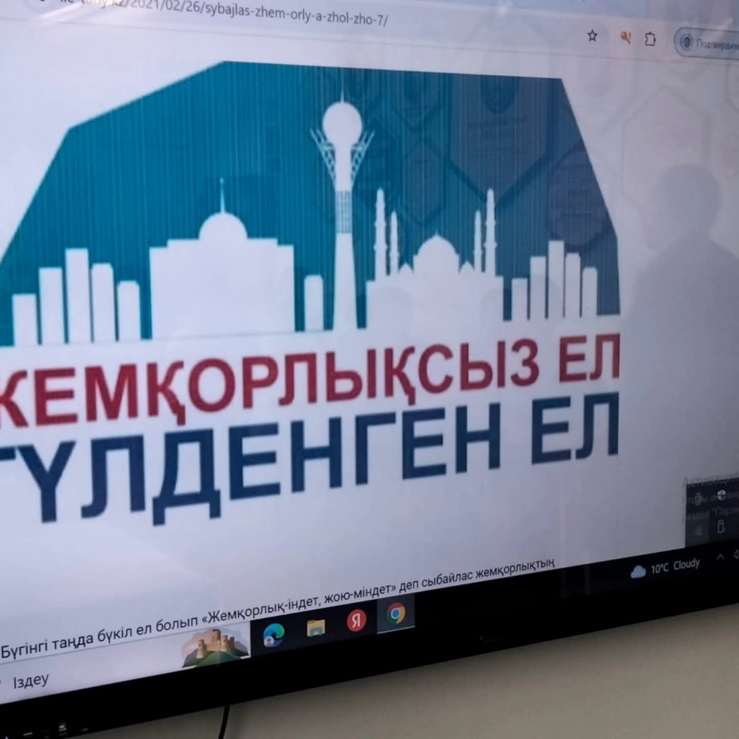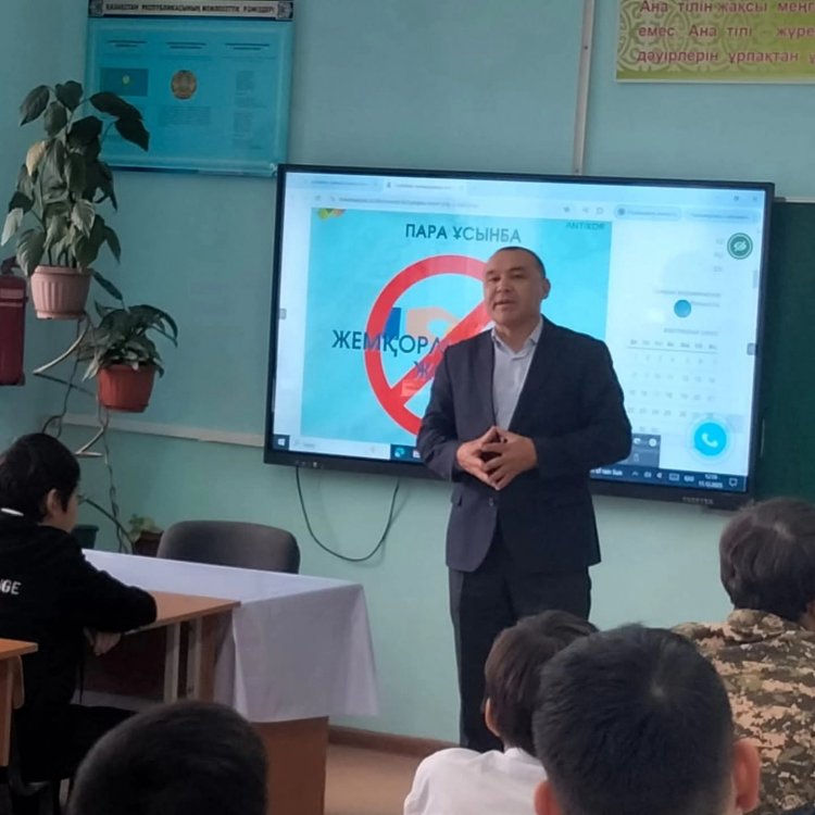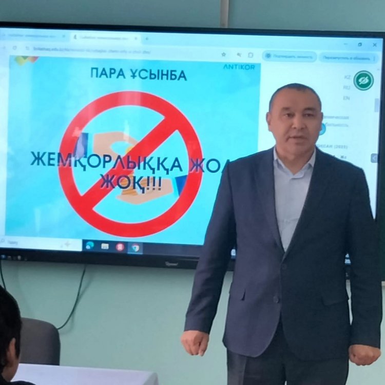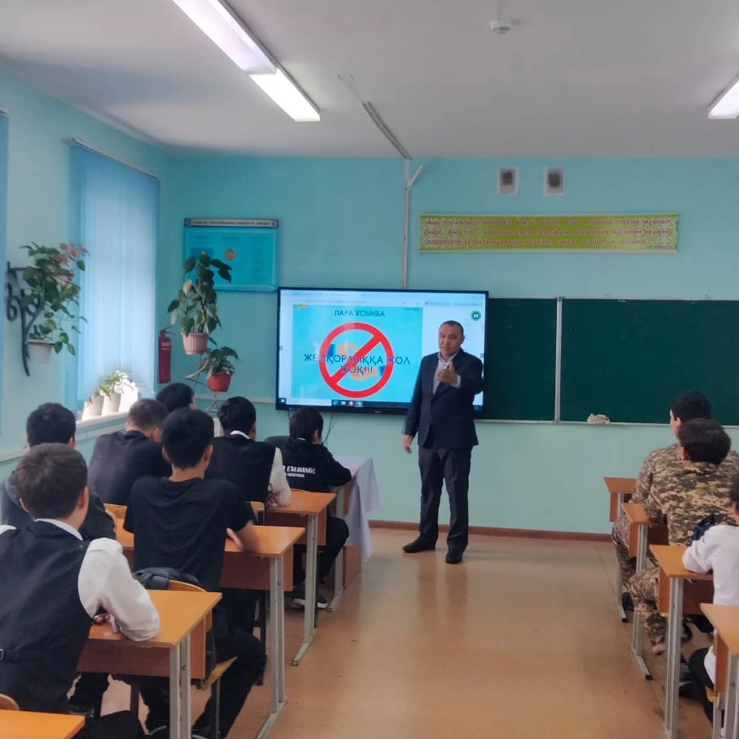 Мектебімізде тарих пәнінің мұғалімі Н.Дүйсенбаев 8-9 сынып оқушыларына “Сыбайлас жемқорлыққа қарсымыз” тақырыбында баяндама жасады.