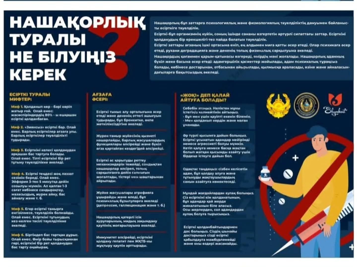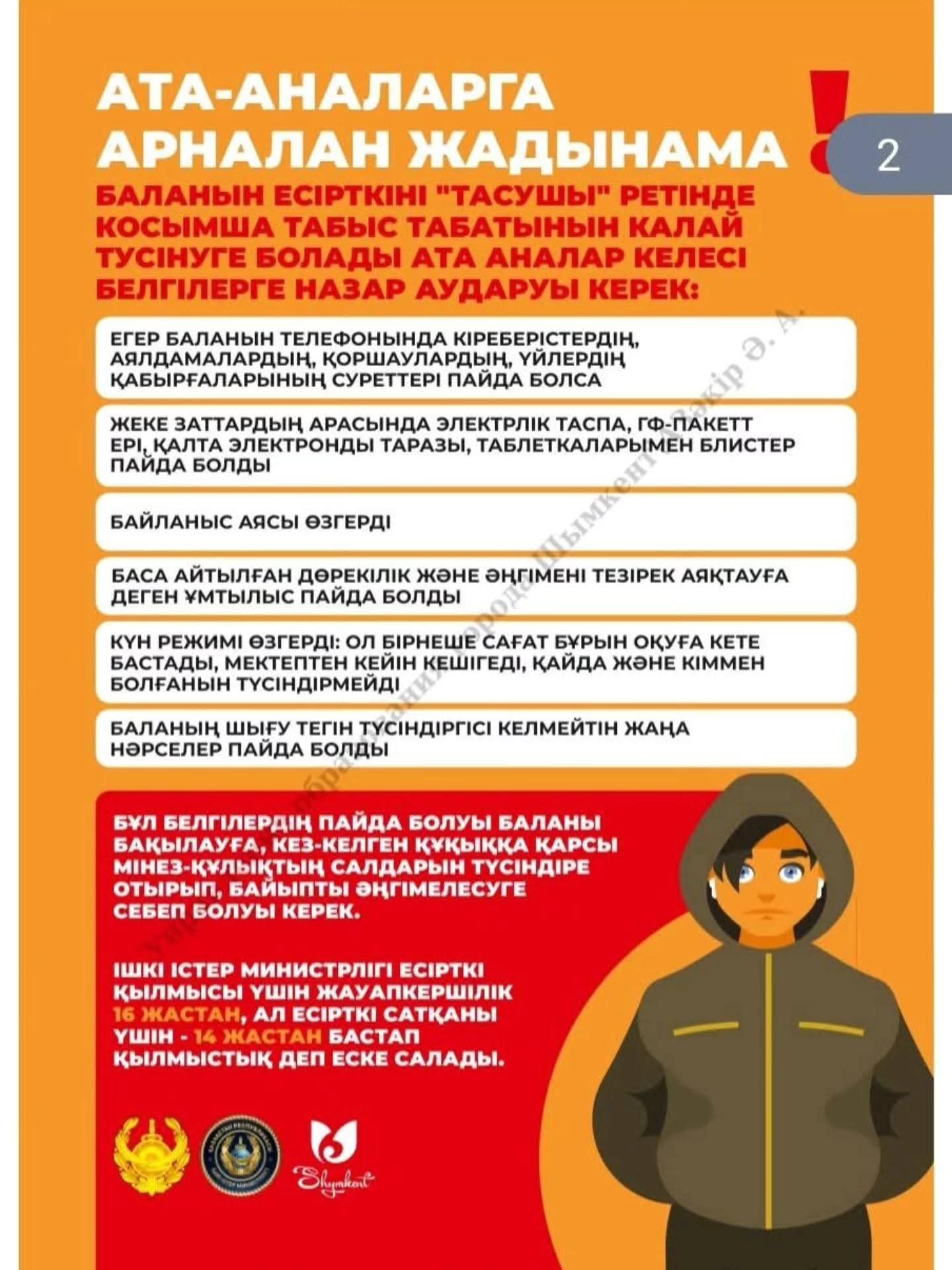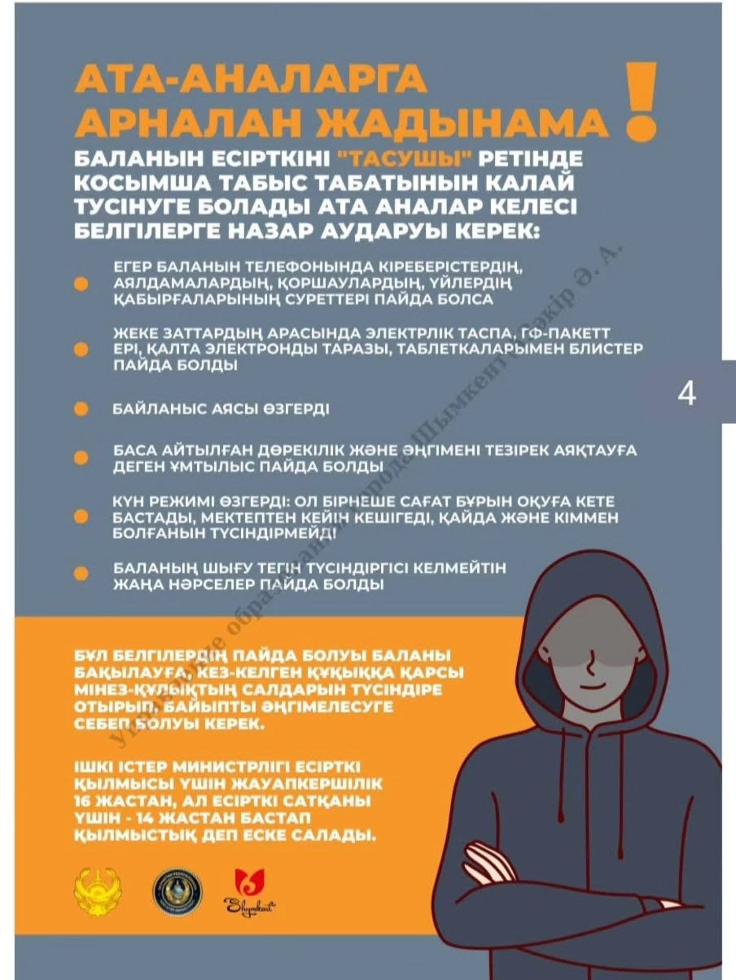 Бұл материалдардың 🎯 мақсаты – балалар мен жасөспірімдерді зиянды әдеттерден қорғау, нашақорлықтың ⚠️ салдары туралы дұрыс ақпарат беру, ата-ана мен бала арасындағы 🤝 сенімді қарым-қатынасты нығайту және қауіптің алдын алуда ⏰ дер кезінде әрекет етуге көмектесу.