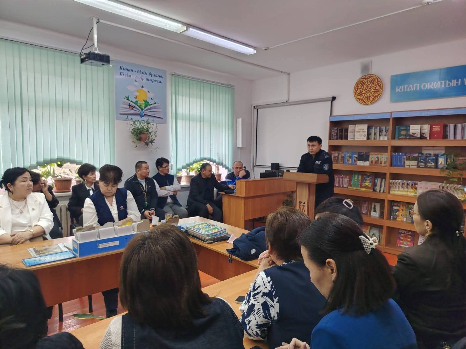 Кездесуге Шымкент КПД Еңбекші АПБ КБ УПИ полиция капитандары Рысқұлбеков Абдулла Бақытұлы қатысты.