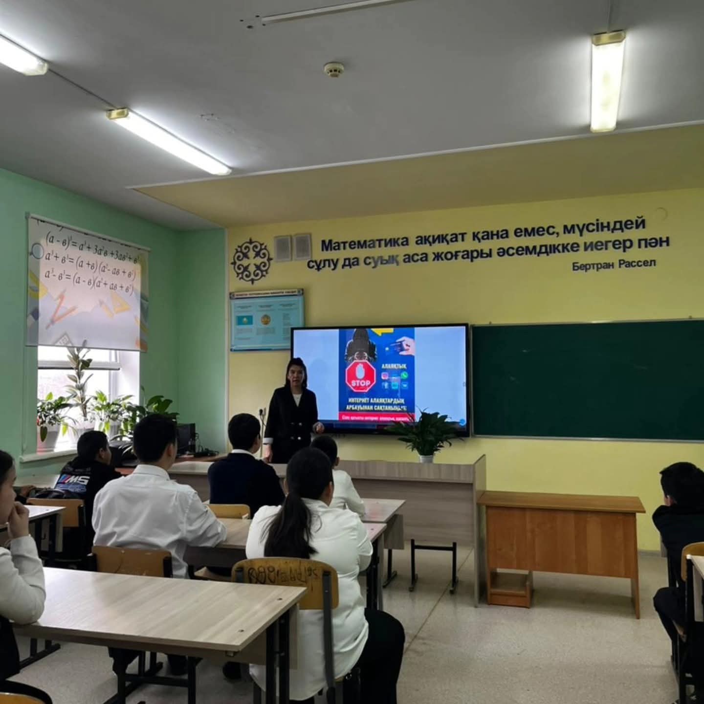 №68 жалпы орта білім беретін мектебінің 8"Ә" сыныбында өтілген "Интернет алаяқтық" туралы балалар мен ата-аналарға арналған қаржылық сауаттылық жадынамасы.