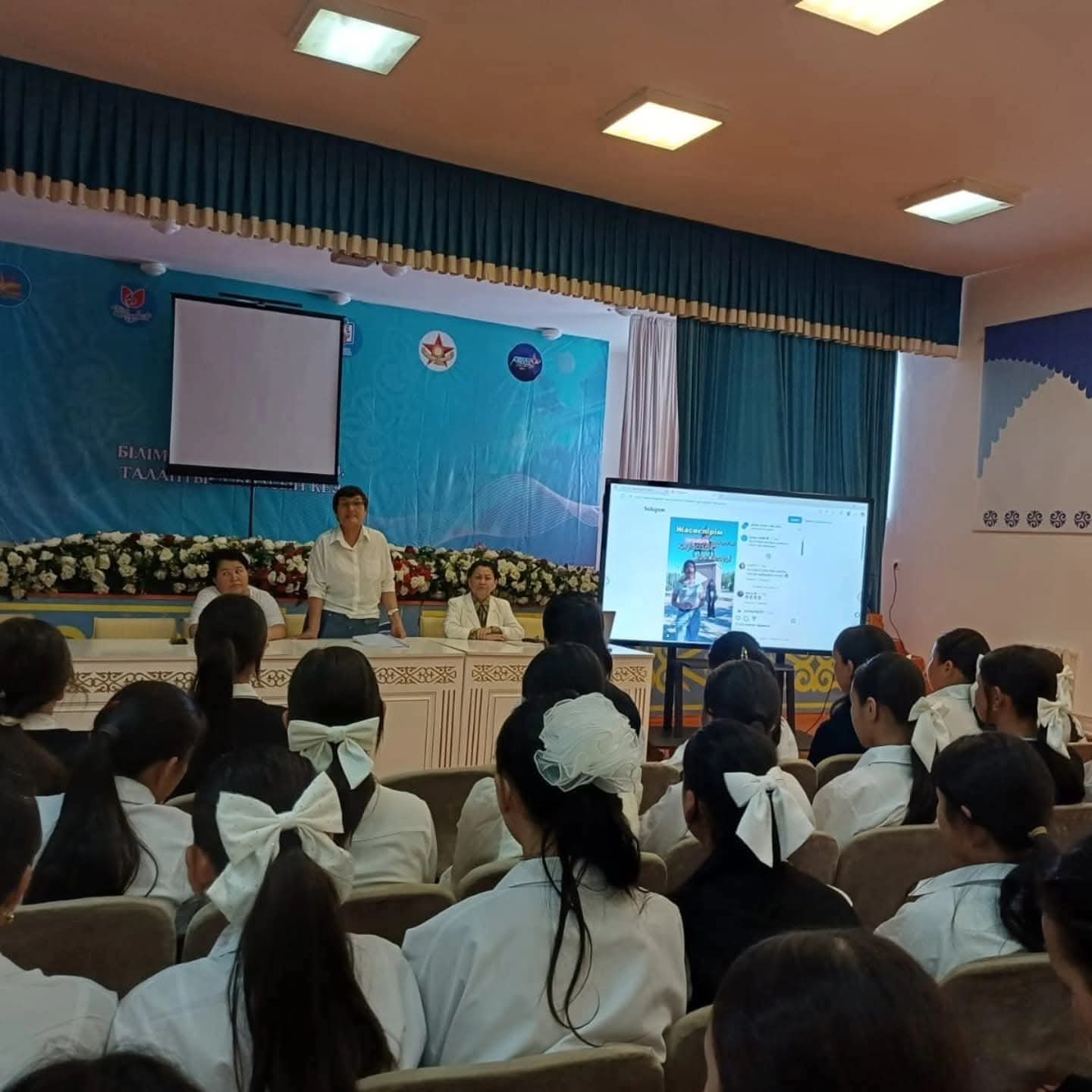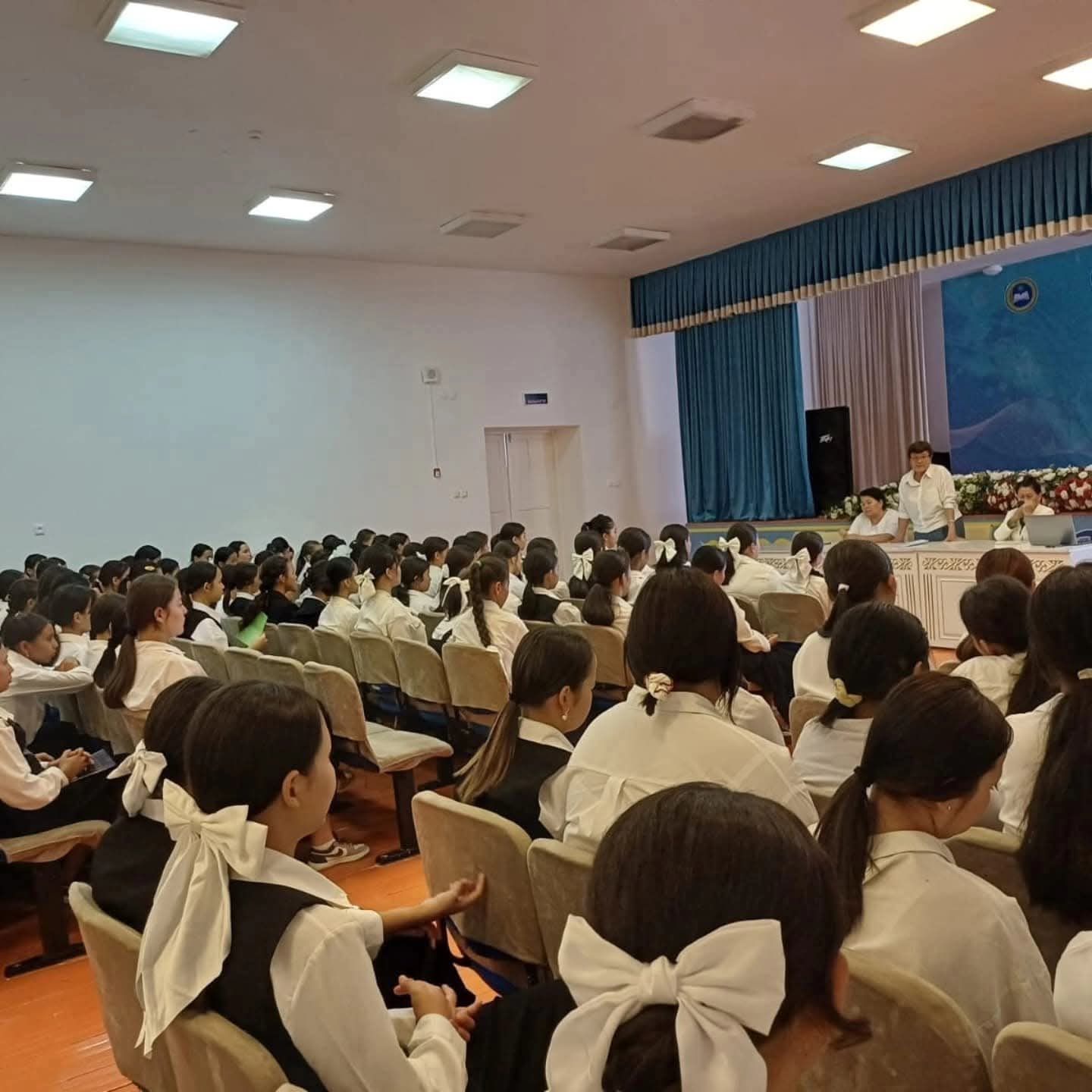 Мектебімізде 8-11 сыныптар арасында "Ой түзелмей, бой түзелмес" тақырыбында жалпы қыздар жиналысы өтті. Жиналыста ерте жүктіліктің алдын алу, жеке бас тазалығы туралы айтылды. Жиналысқа директордың тәрбие ісі орынбасары М.Альменова,"Қыз Жібек"қыздар клубының төрайымы М.Қосыбаева мүшелері П.Ақбаева, А.Балажанова қатысты.