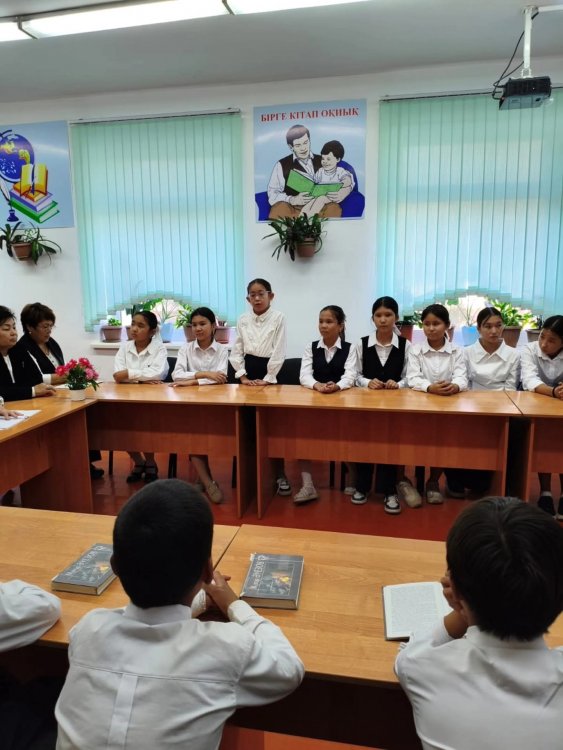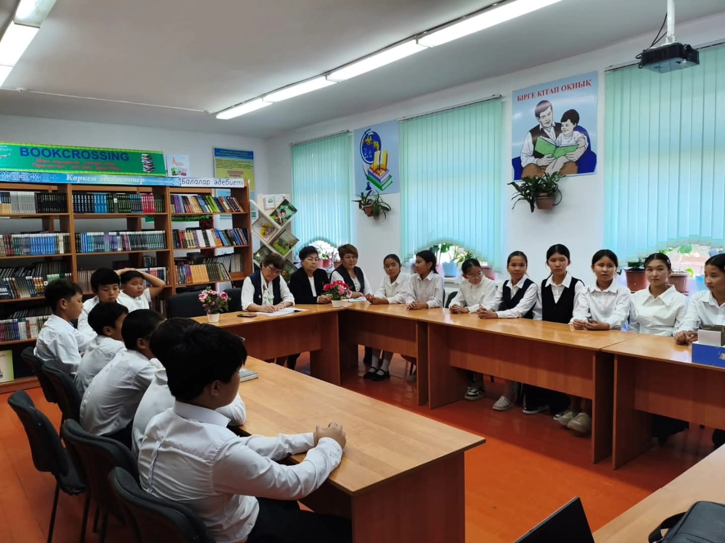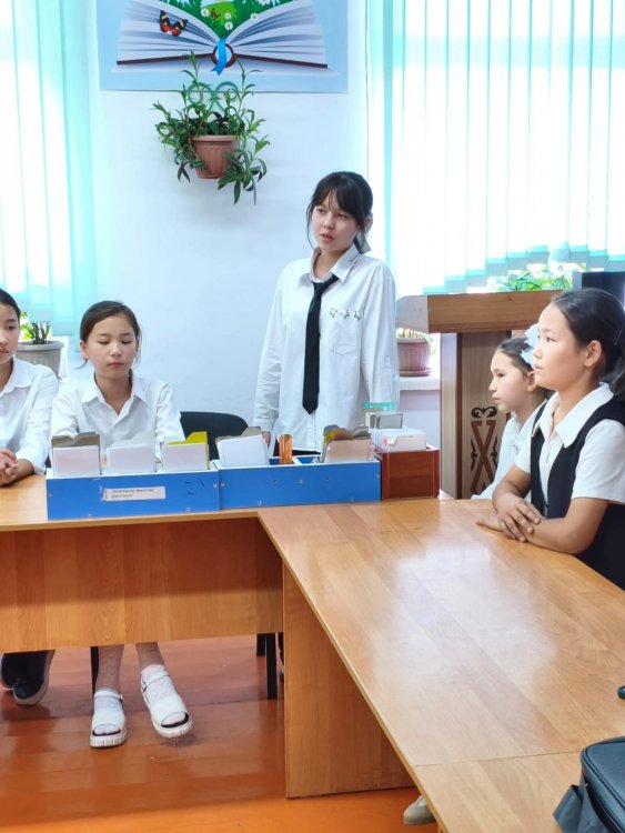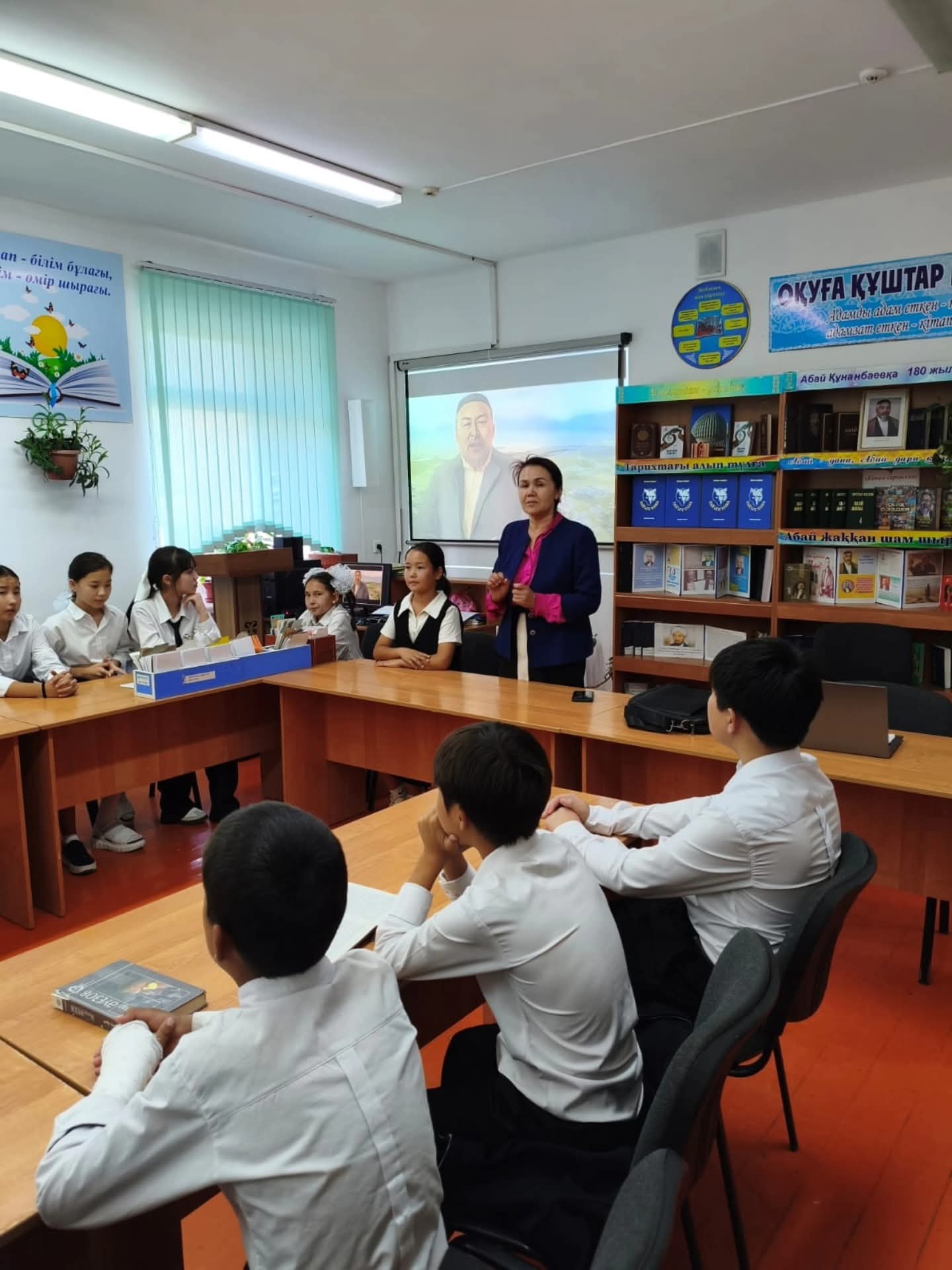 Мектебімізде Тіл мерекесіне орай қазақ тілі мен әдебиет мұғалімі Жунисова Жанар Масақбайқызы 7 "Ә" сынып оқушыларымен