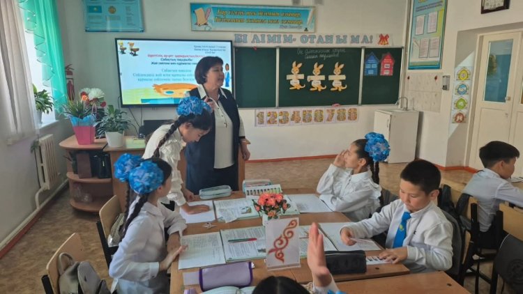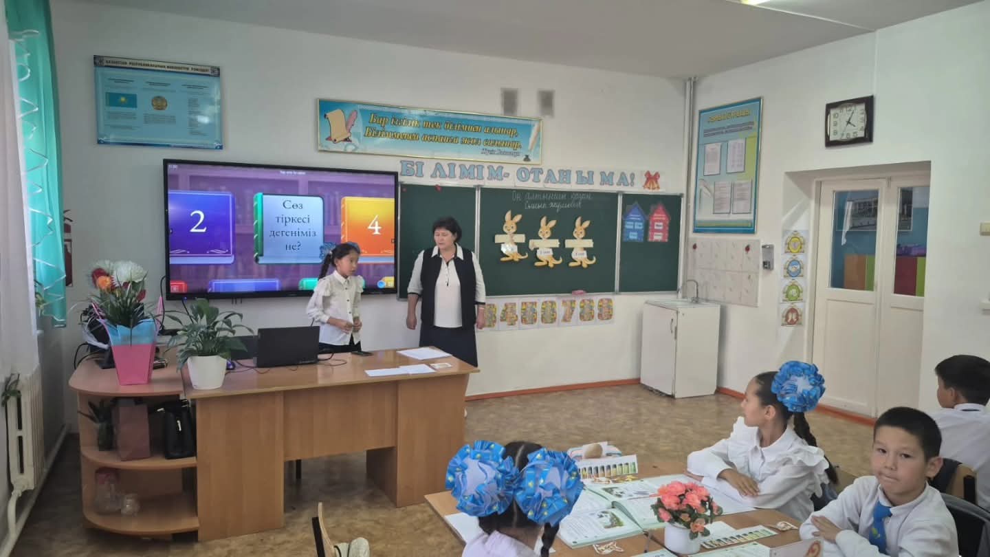 Мектебімізде қалалық "Білім бастауы бастауышта" тақырыбында бастауыш сыныптар онкүндігінің өтуіне орай 16.10.2025ж.күні В.Карибозова 4"Г"сынып оқушыларымен қазақ тілі пәнінен "Жай сөйлем мен құрмалас сөйлем "тақырыбында ашық сабақ өтті.Сабақ барысында мұғалім жаңаша әдіс-тәсілдерді қолдана отырып,сабақтың оқу мақсаты орындалды.Wordwall платформасы арқылы өткен сабақтағы ережелер сұралды. Оқушылар жаңашыл әдіс-тәсілдер арқылы топтық ,жұптық тапсырмаларды қызығушылық танытып орындады.Сабақ барысында ұлттық құндылықтар дәріптелді.Сабақ мақсатына жетті.