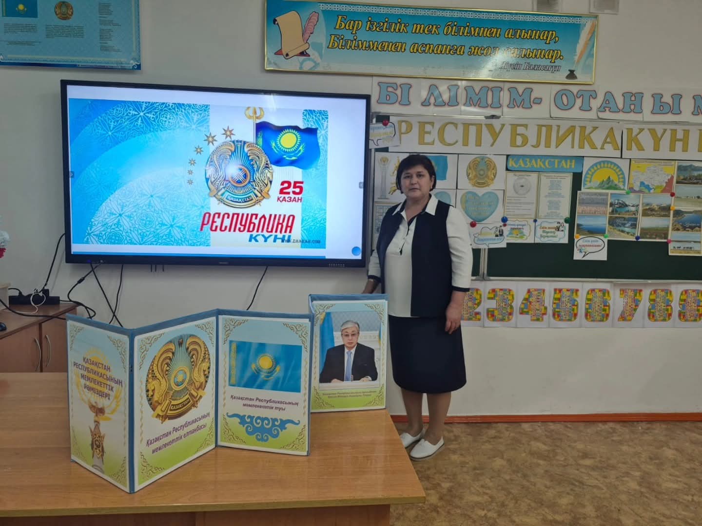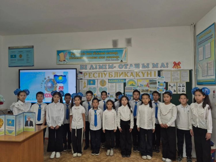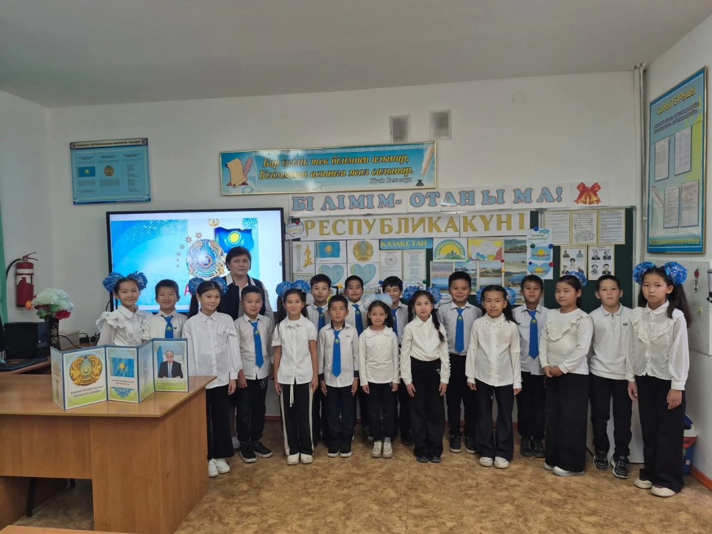 Мектебімізде бастауыш сынып мұғалімі В.Карибозова 4 "Г" сынып оқушыларымен 25 қазан Республика күніне арналған "Қазақстан - туған еліме, ұлы өлкем" атты ашық тәрбие сағатын өтті.