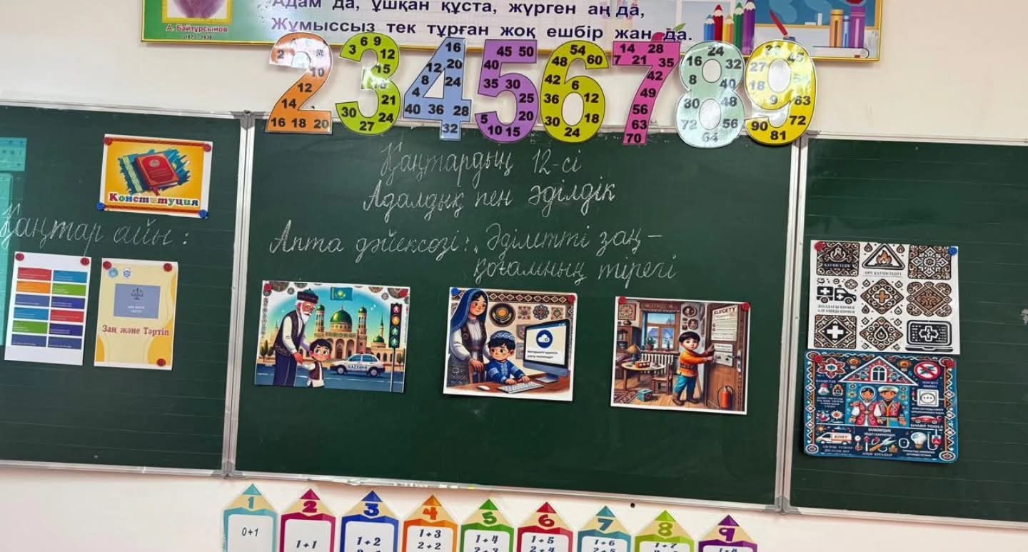 №68 жалпы орта білім беретін мектебінің 4 “В” сыныбында “Заң және тәртіп” айы аясында “Адалдық пен әділдік” тақырыбында сынып сағаты өткізілді. Сынып сағатының тәрбиелік мақсаты: