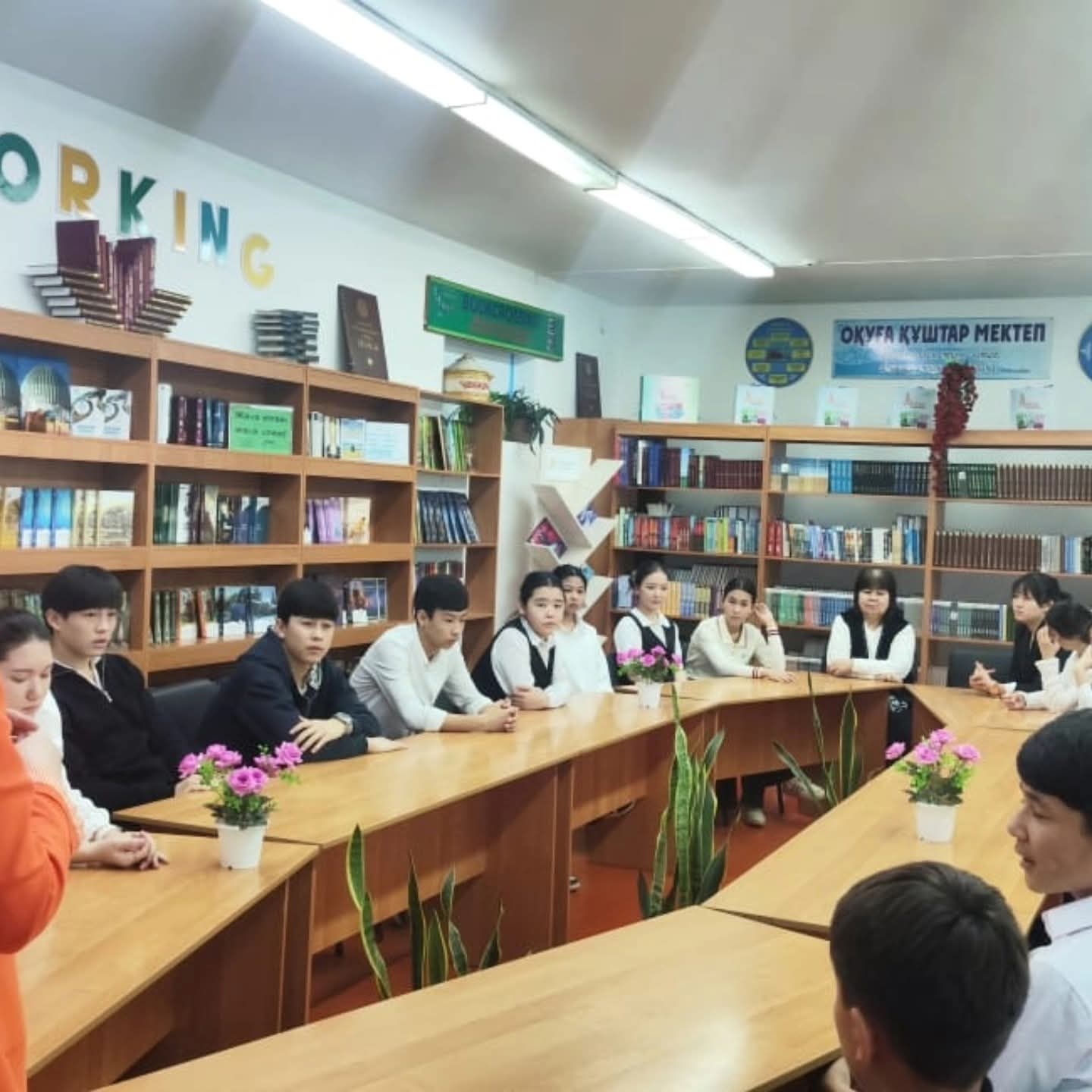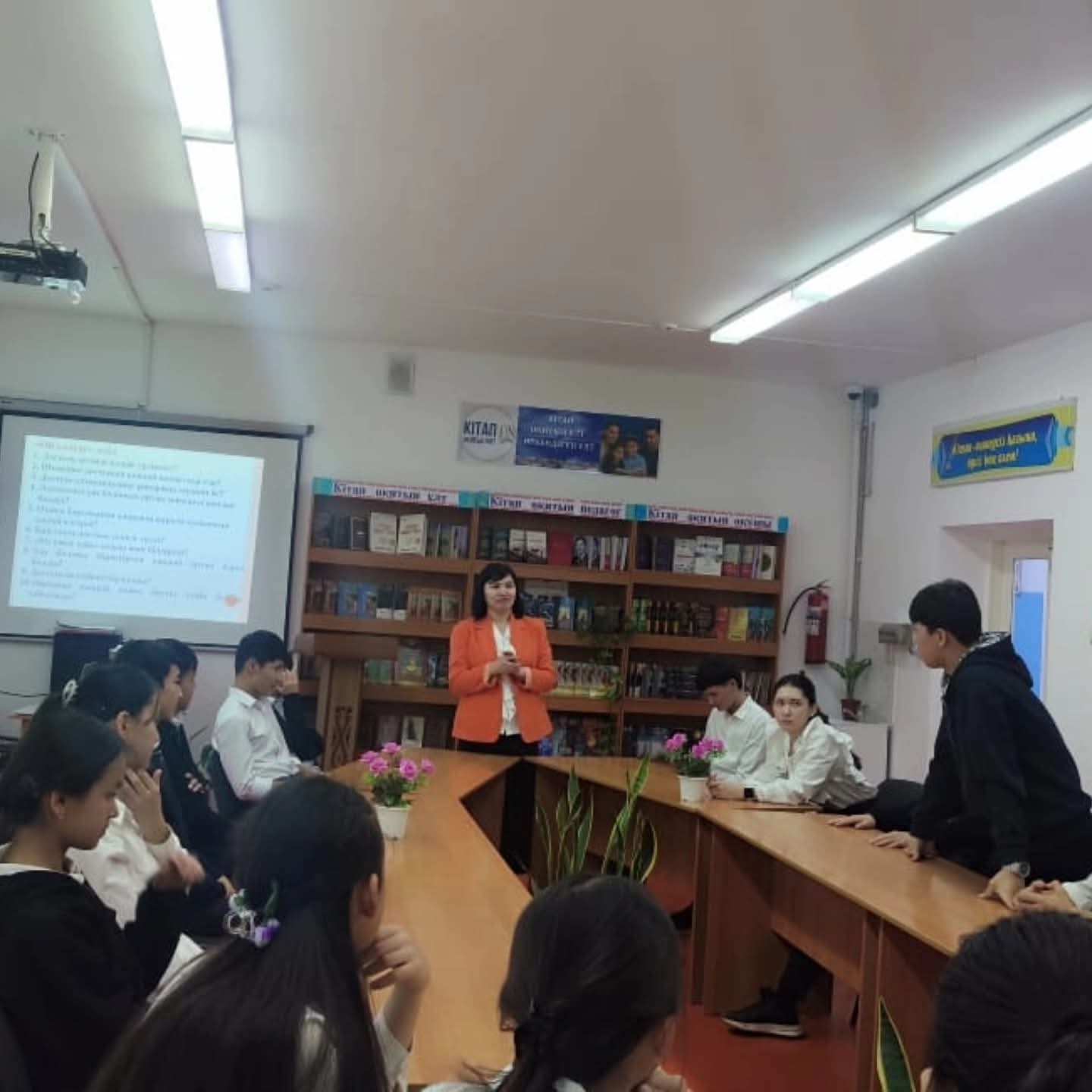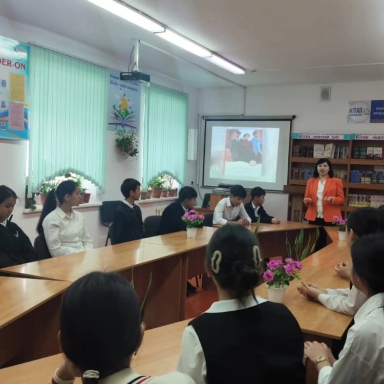 №68 жалпы орта білім беретін мектебінде 23.01.2026ж күні "КІТАП ОҚИТЫН ҰЛТ ЖОБАСЫ" аясында ұйымдастырылған қазақ тілі мен әдебиеті пәні мұғалімдері Н.Абдуллаева, С.Бегімбетова 9-сыныптармен Төлен Әбдіковтің "Біз үшеу едік" әңгімесін жан-жақты талдады.