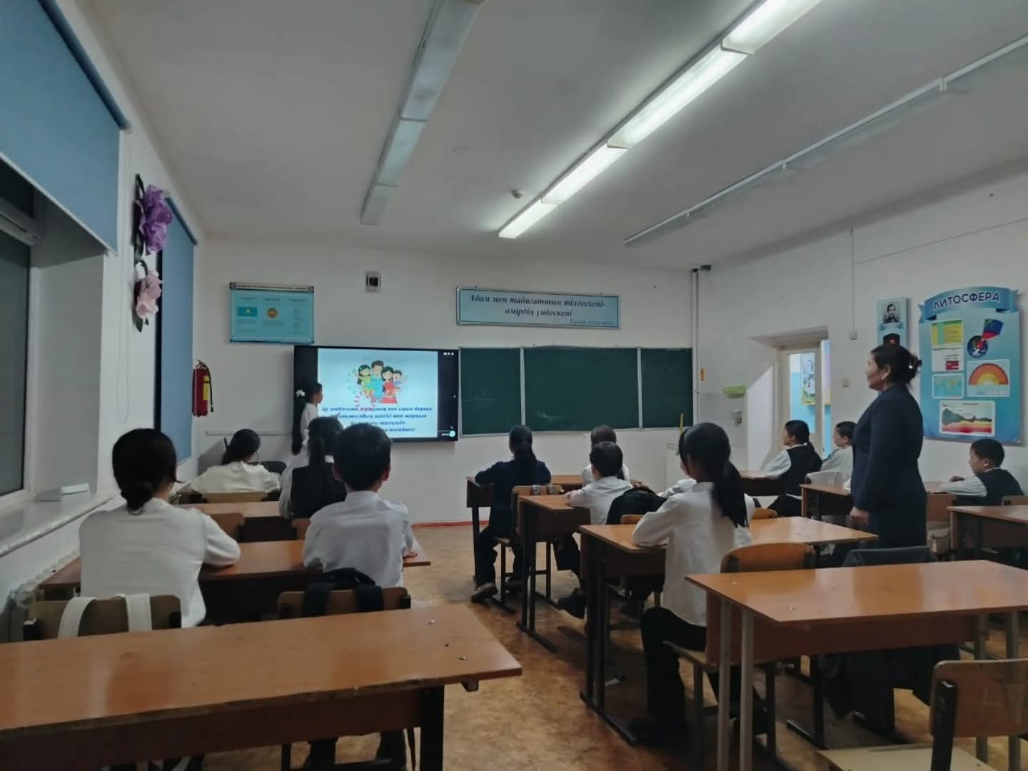 Мақсаты: Оқушыларға цифрлық әлемнің мүмкіндіктері мен қауіптері туралы ақпарат беру, оларды интернет пен цифрлық құрылғыларды қауіпсіз және тиімді қолдануға үйрету. Іс-шара барысында жеке мәліметтердің құпиялығын сақтау, интернетте этикалық мінез-құлық ұстану, алаяқтық пен кибербуллингтен қорғану жолдары түсіндірілді. Оқушылардың цифрлық сауаттылығын арттыру және заманауи технологияларды саналы әрі жауапты пайдалану дағдыларын қалыптастыруға бағытталды.