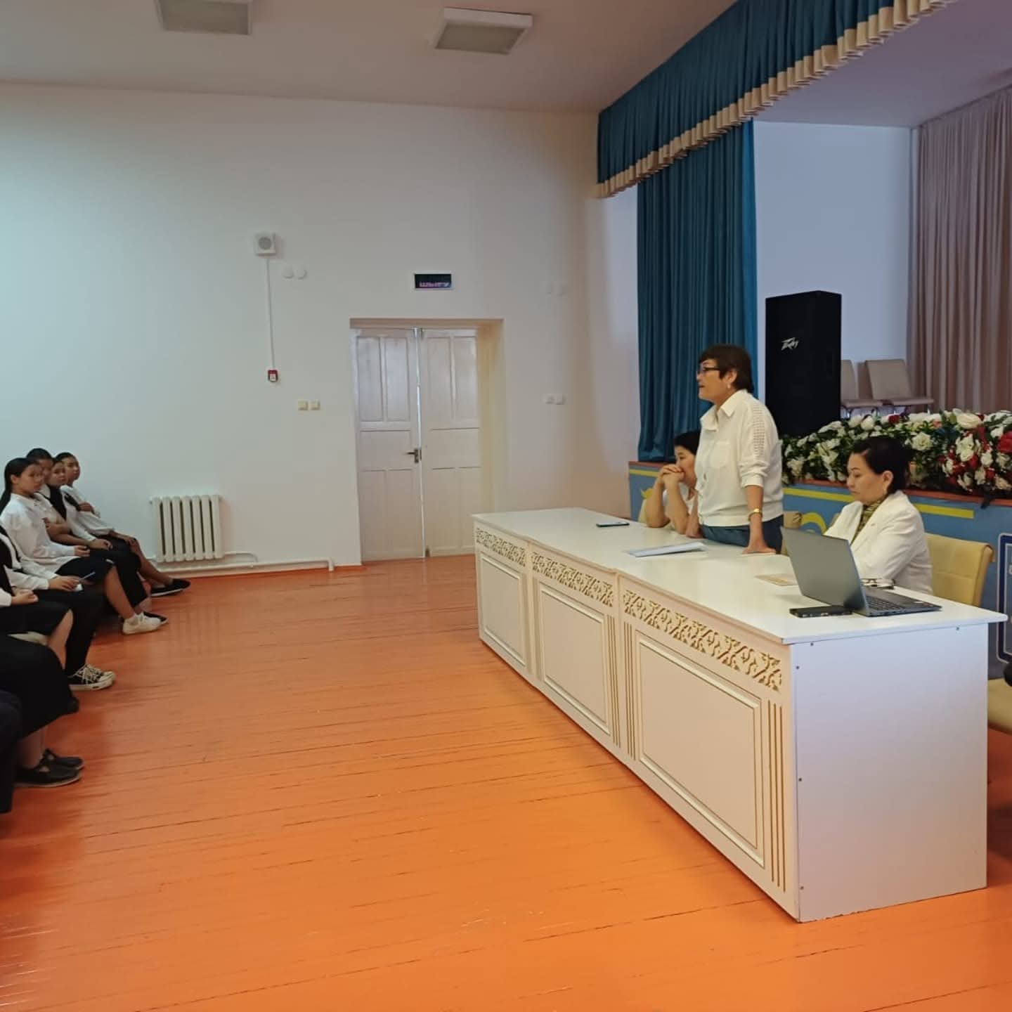 Мектебімізде 8-11 сыныптар арасында "Бой түзелмей, ой түзелмес" тақырыбында жалпы қыздар жиналысы өтті. Жиналысқа директордың тәрбие ісі орынбасары М.Альменова,"Қыз Жібек"қыздар клубының төрайымы М.Қосыбаева мүшелері П.Ақбаева, А.Балажанова қатысты. Мақсаты :қыз балаларды әсемдікке, сыпайылыққа, инабаттылыққа тәрбиелеу, ішкі жан дүниесін байыту, қыз намысы, сымбаты туралы жан -жақты мағлұматтар берді. Қыздардың тәртібі, мектеп формасының сақталуы, сөйлеу әдебі жүру мәдениеті мен жеке бас тазалығы туралы айтылды. Ұлттық дәстүрді сақтап, қыз баланың сымбатты жүруі туралы ой қозғалды.